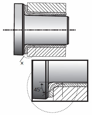 For the flanging sleeve, the transformation of the radius from the flanging sleeve to the axial conversion component must be considered, and the section surface must have a sufficiently large chamfer. The flanging sleeve can still support the edge of the axial load part to prevent the accumulation of dirt.