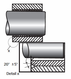 The seat holes are chamfered fGx20o±5o to make it easier for the bushing to press into the seat holes.